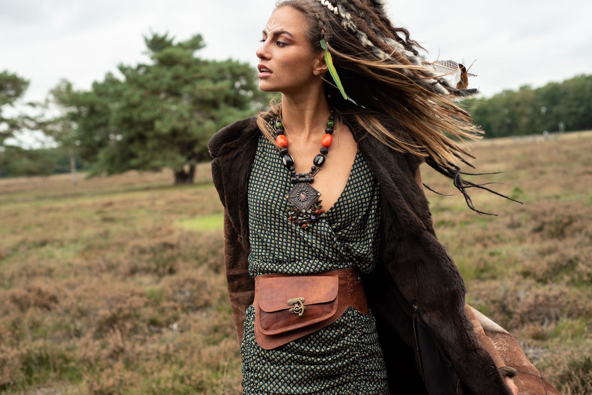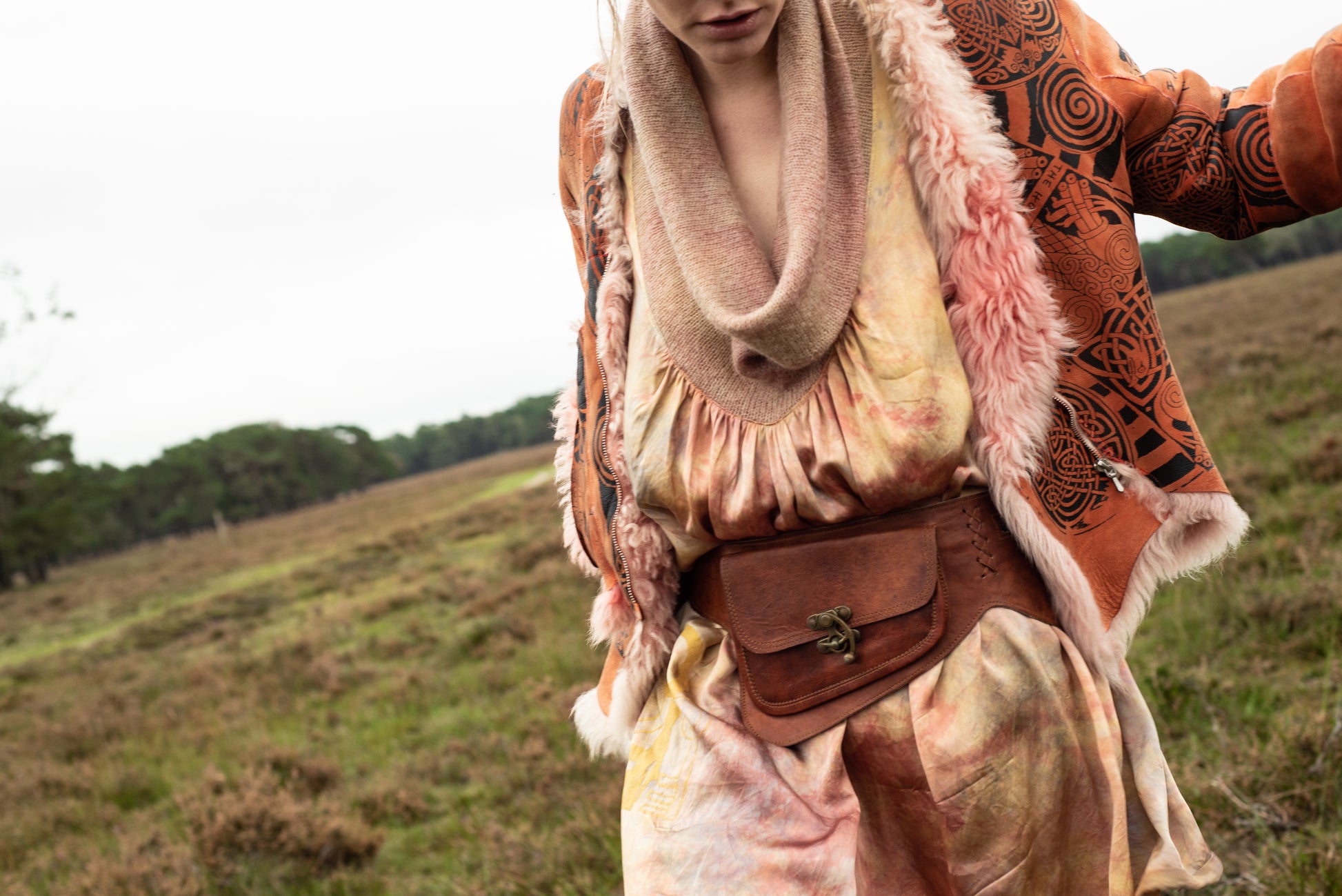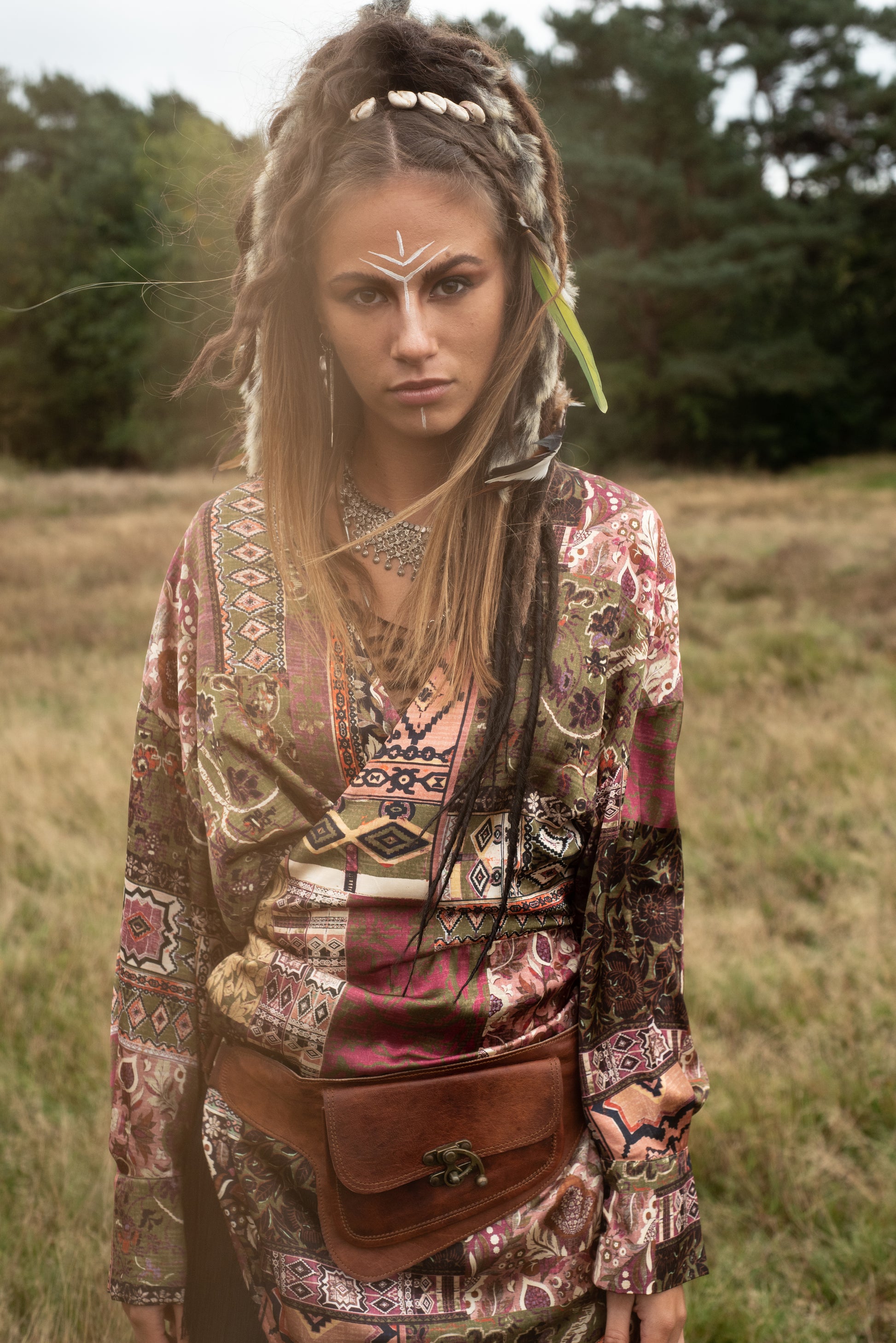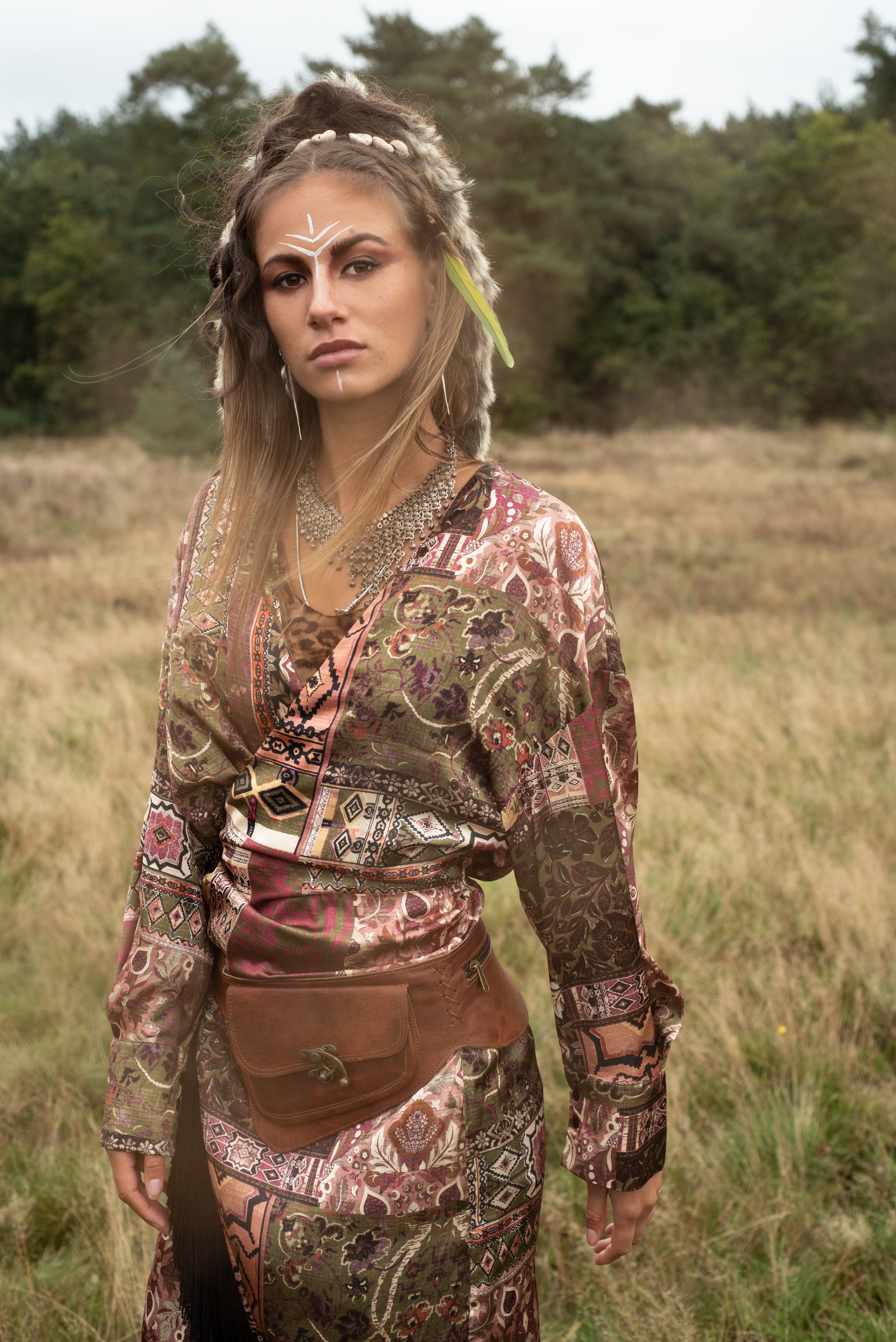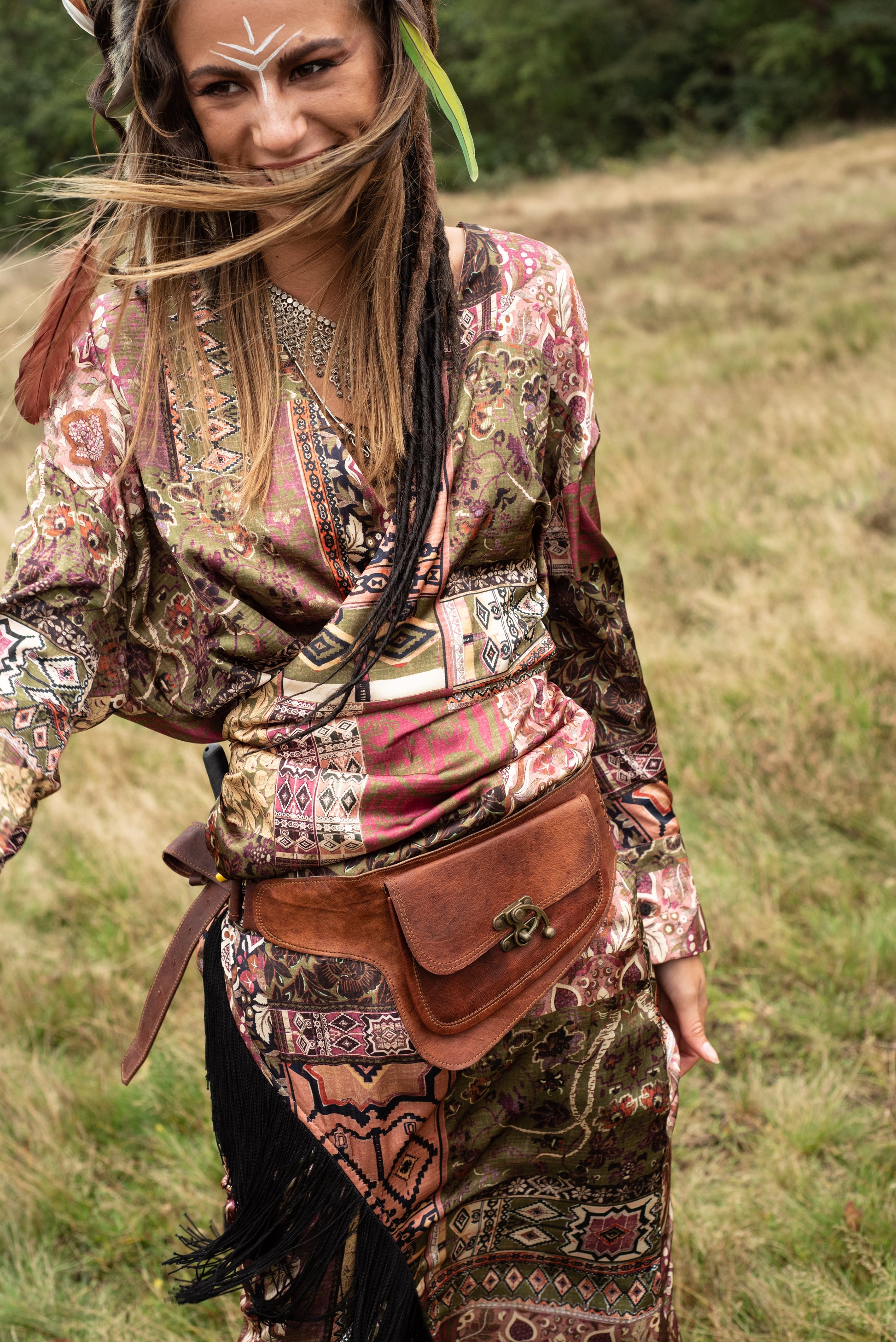 Onmisbaar voor festivals, op de dansvloer, op reis of als mooie (en super handige) accessoire over je jurk of broek. Onze prachtige Ishana! Al jaren een bestseller. Ze heeft aan de voorkant 1 groot vak voor je mobiel, sleutels en portemonnee met gesp sluiting. Daarnaast nog een klein rits vakje voor bijvoorbeeld muntjes. Aan de achterkant (dus tegen je buik) nog een groot rits vak voor bijvoorbeeld je papieren, geld of je paspoort.