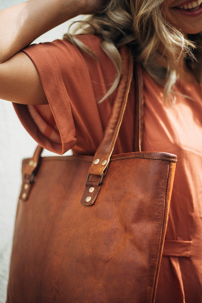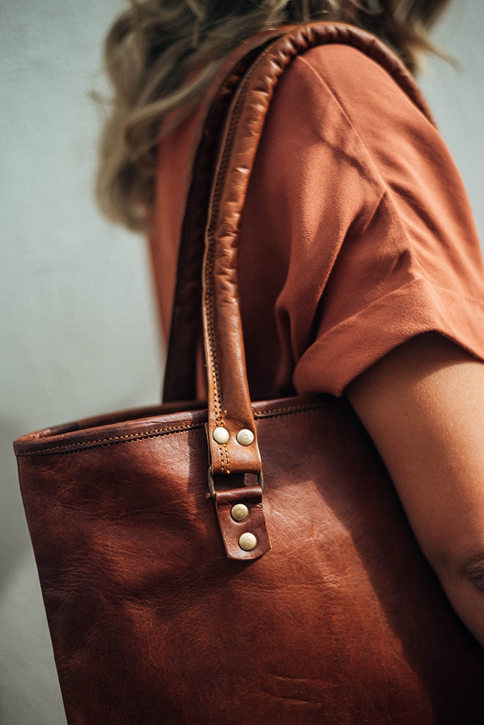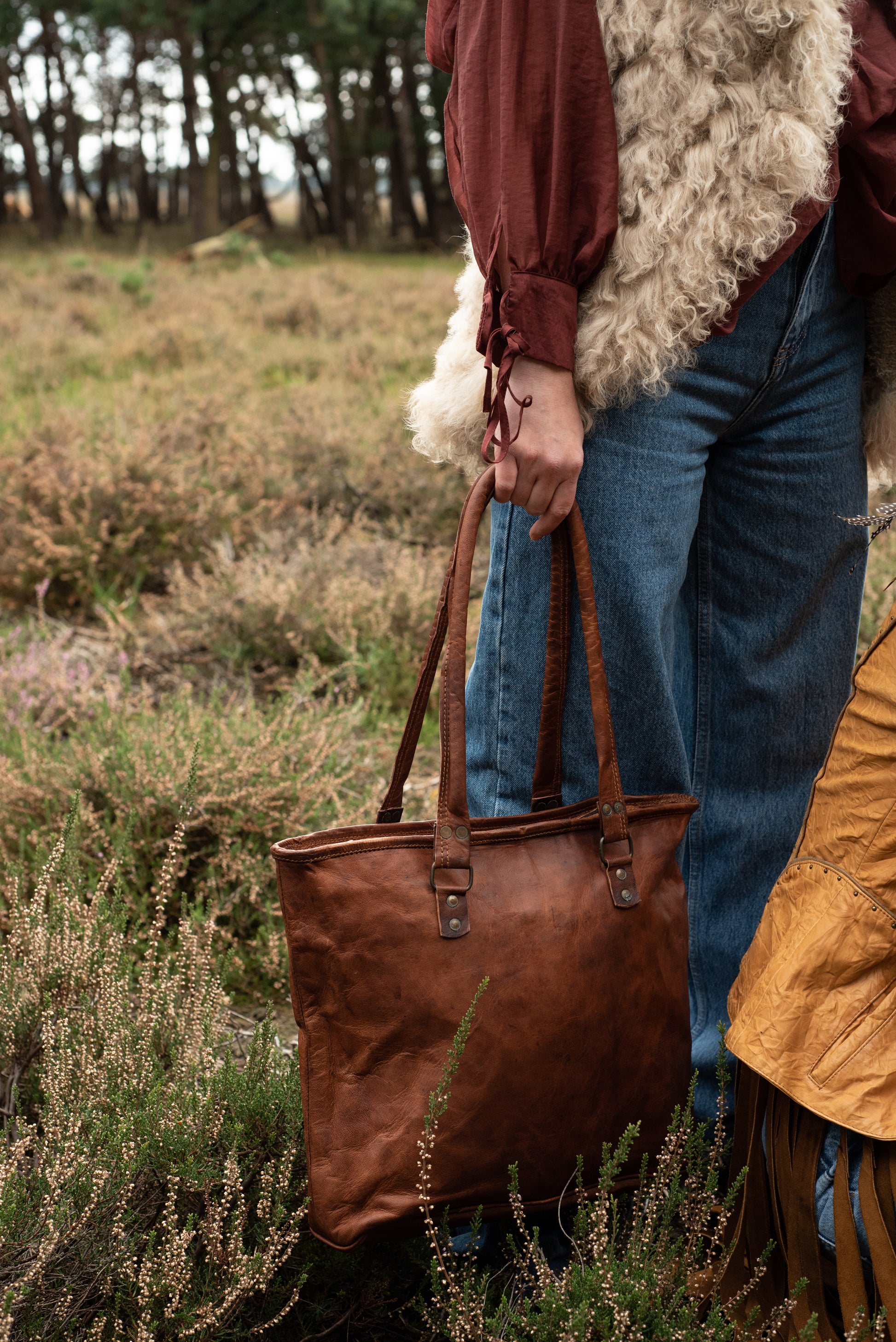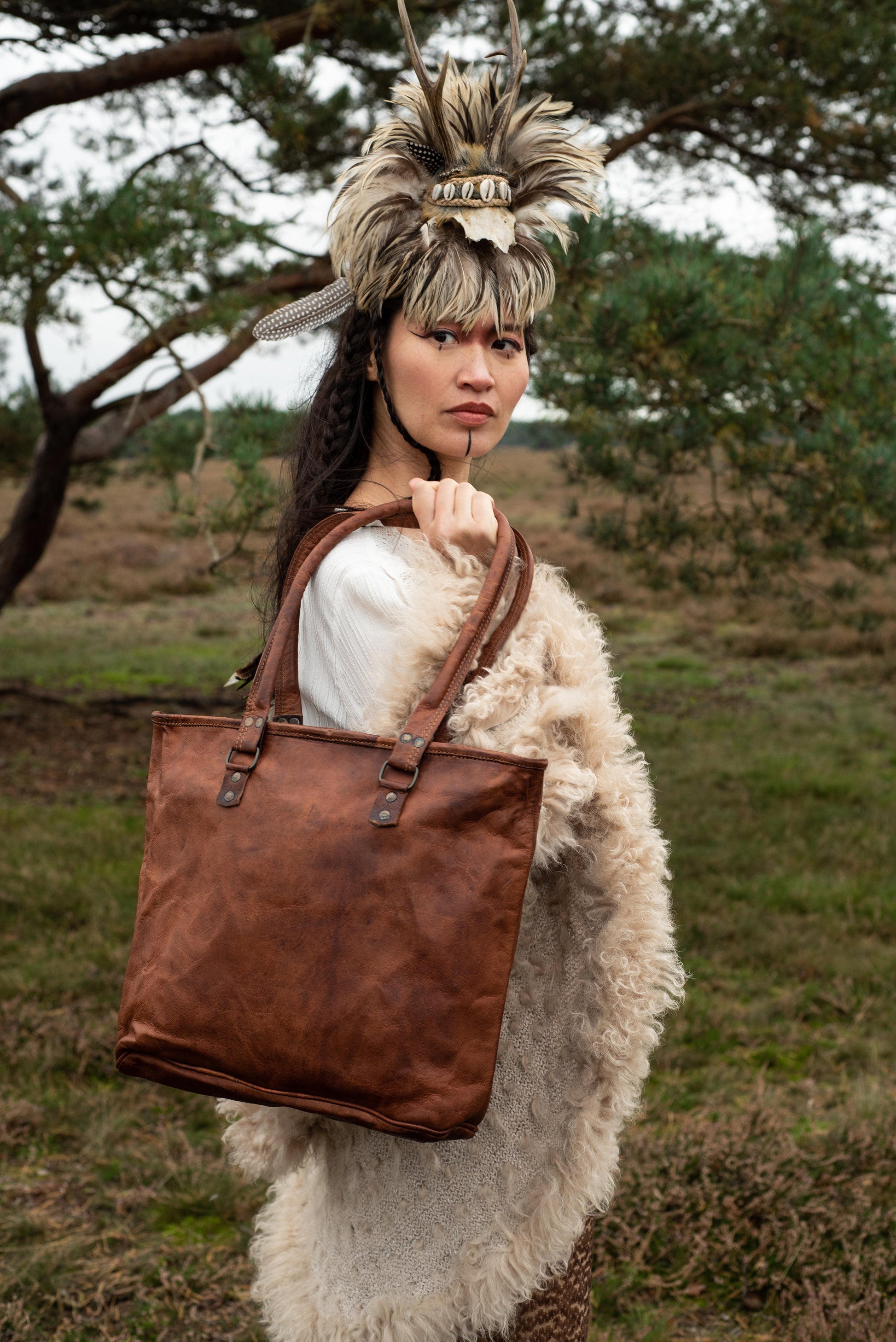 *Deze tas is gemaakt van onbewerkt leer. Daardoor kan er verschil in kleur zijn. Dat zie je ook terug in de foto's. De tas wordt sowieso donkerder door gebruik.