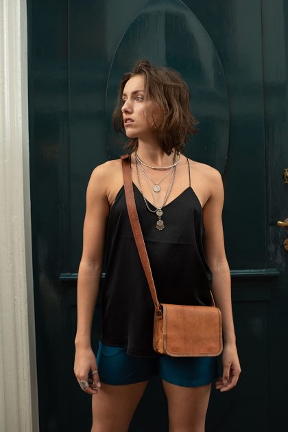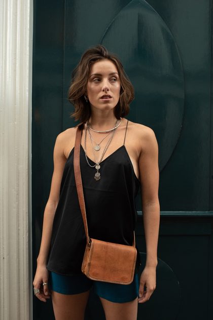 Dit crossbody schoudertasje is stijlvol en praktisch. Door het compacte design passen je portemonnee, telefoon en andere onmisbare items er perfect in. Tevens is ze klein genoeg zodat jij vrij kunt bewegen gedurende de dag én avond. Ze heeft één groot vak en vier extra vakjes waarvan twee met rits en twee zonder. Yama is gemaakt van leer. Dit tasje is ideaal voor feestjes, festivals en wanneer je geen zin hebt om een grote tas mee te nemen.